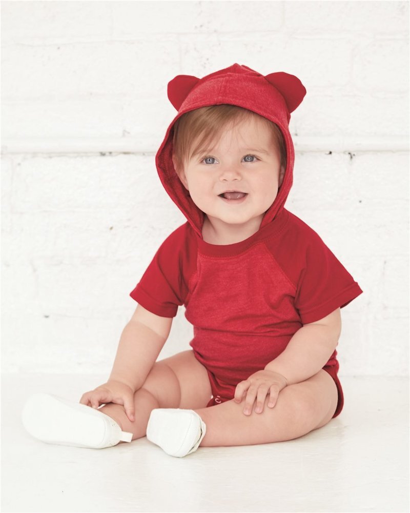 Rabbit Skins Infant Fine Jersey Raglan Bodysuit with Hood & Ears 4417