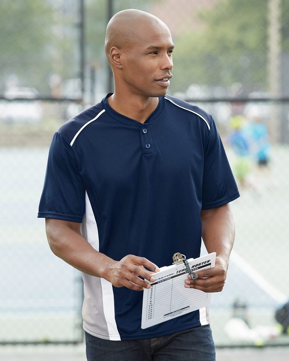 - 100% polyester wicking knit on front of jersey