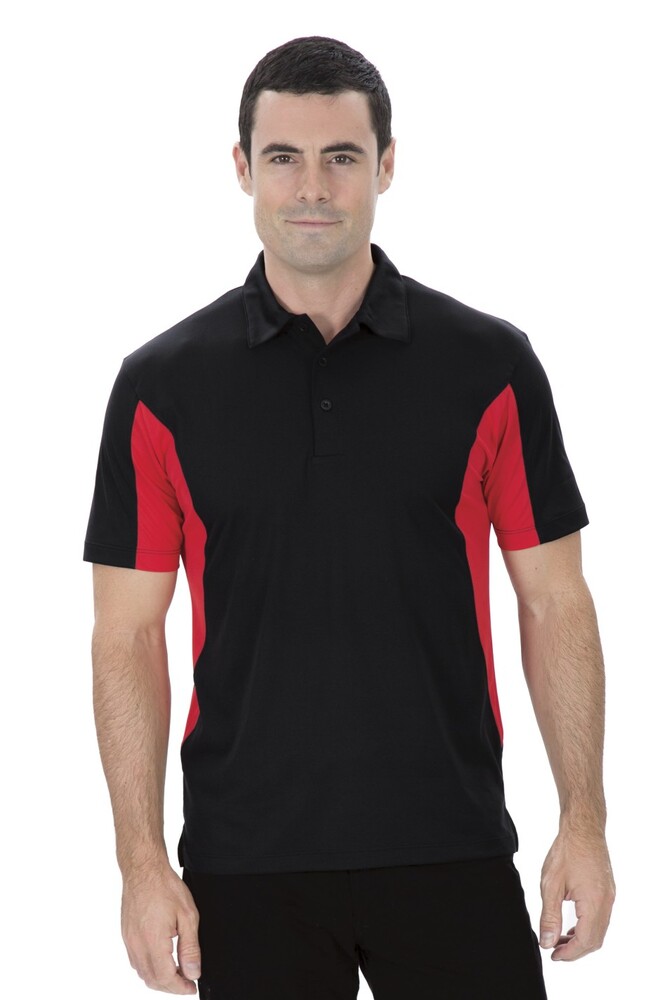 6.3-oz, 100% polyester flat tricot micropique Self-fabric collar Contrast panel at sides and centre back of collar Moisture Wicking Snag Resistant Breathable Tagless CONTRAST PANEL ON CENTRE BACK OF COLLAR DUE TO THE NATURE OF POLYESTER, SPECIAL CARE MUST BE TAKEN THROUGHOUT THE DECORATION PROCESS.