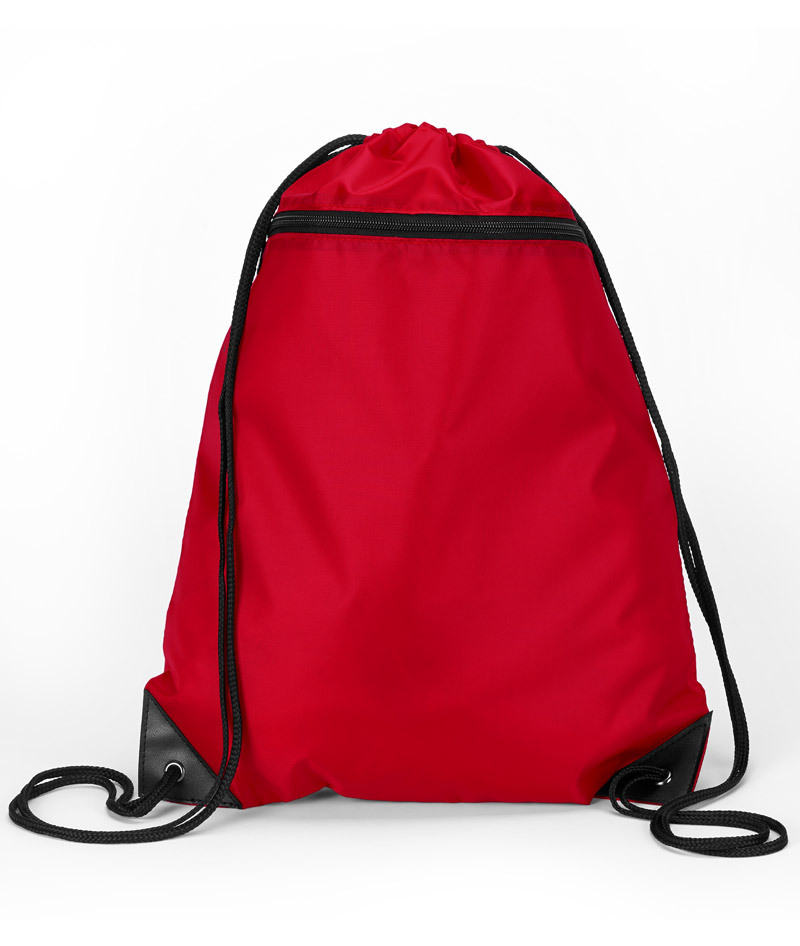 Liberty Bags 210 denier Zippered Drawstring Backpack. 210 denier nylon. Outside front zippered pocket. Contrast black reinforced corners. Non-branded label/tag. 14x18. WARNING: This product can expose you to chemicals including Di(2-ethylhexyl)phthalate (DEHP), Di-n-butyl phthalate (DBP) which is/are known to the State of California to cause cancer and/or birth defects and other reproductive harm. For more information, go to www.P65Warnings.ca.gov. Color Red exempted.
