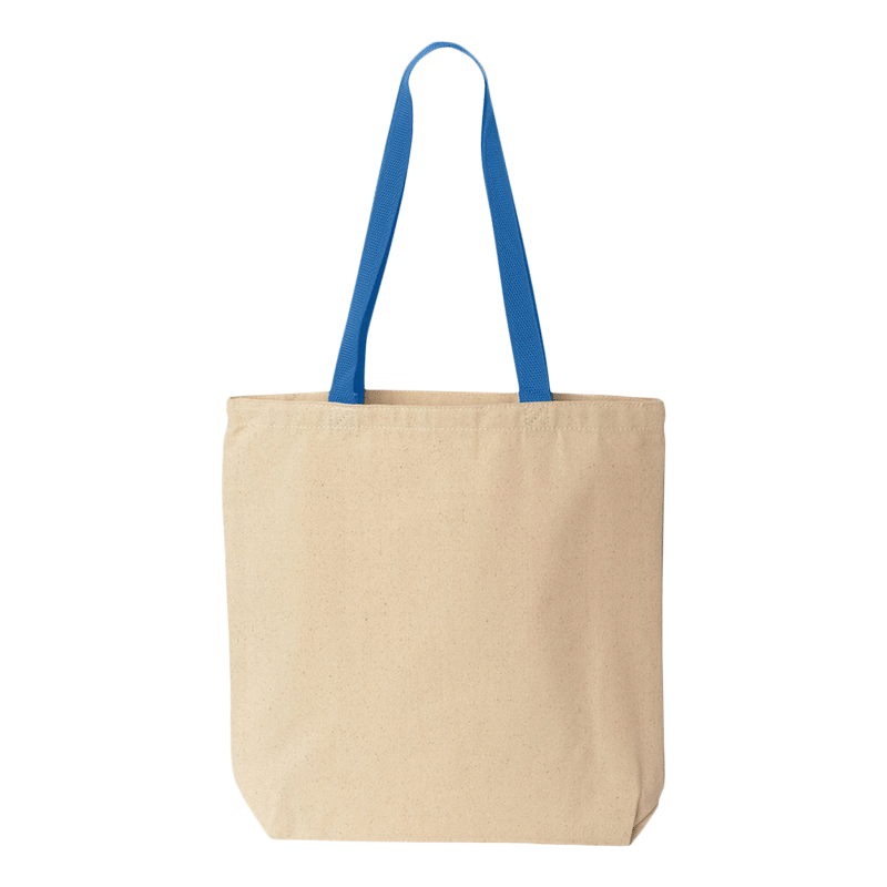 Liberty Bags 10 Ounce Marianne Cotton Canvas Tote Bag. 10 oz 100% cotton canvas. Gusset bottom, contrasting polypropylene. 22 inch handles with a 10 drop. 10wx10.5xh