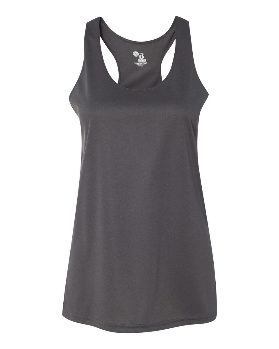 Badger Racerback Tank. 100% Polyester moisture management/ antimicrobial performance fabric. Single-needle bound neck & armhole. A-line body, double-needle hem. Badger heat seal logo on center back neck.