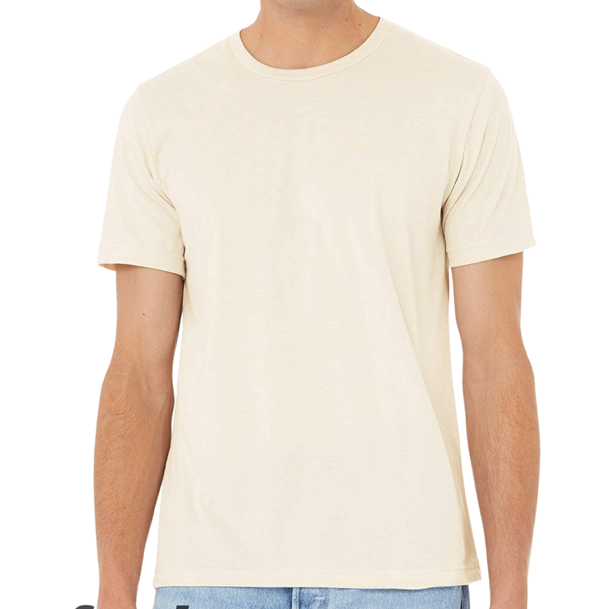 Bella+Canvas Unisex Jersey Recycled Organic Short Sleeve T-Shirt. Retail fit, side-seamed, shoulder-taping, No conventional cotton or polyester used. Tear-away label. Solid Colors: 55% Organic Airlume Combed & Ring-Spun Cotton, 45% Recycled PolyAthletic Heather: 90% Organic Airlume Combed and Ringspun Cotton 10% Recycled Polyester