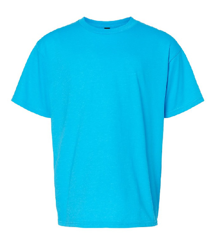 Gildan Youth 4.6 Ounce Softstyle CVC Short Sleeve T-Shirt. 60% ringspun cotton, 40% polyester, 4.6 ounces. Made with our soft ring spun cotton rich blend, softsyle's high stitch density fabric offers a smoother printing surface. Subtle heather texture on all colors except Pitch Black and White. Polyester gives a drapey and soft hand. Narrow width, rib collar. Taped neck and shoulders for comfort and durability. Modern classic fit, seamless body. Recycled, high-performing black tear-away label. CPSIA Tracking Label Compliant. Gildan partners with Better Cotton to improve cotton farming globally. Made with OEKO-TEX certified low-impact dyes. Plastic waste is diverted from landfills annually by the removal of polybags from all products except color white.
