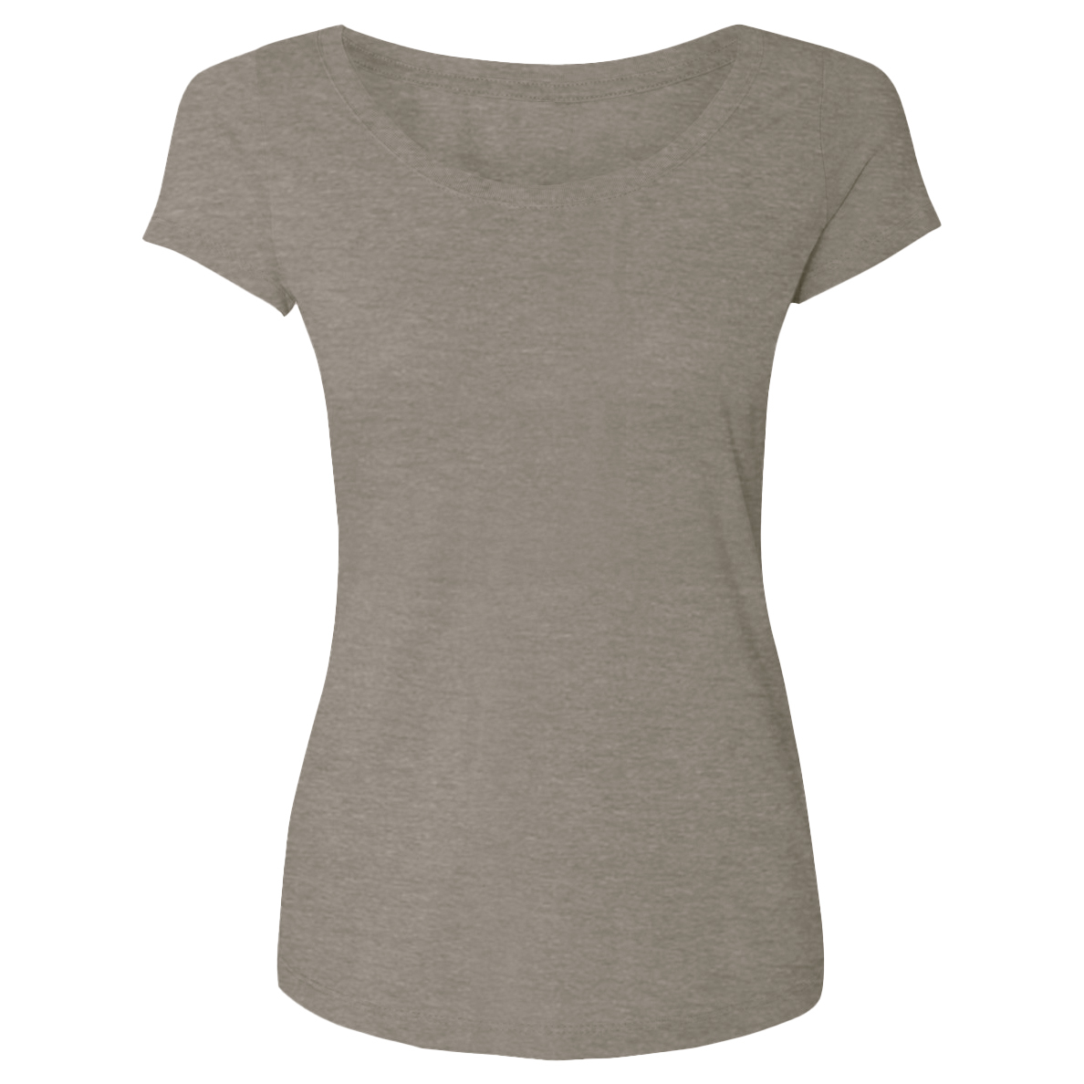 Next Level Women's 4.3 Ounce Tri-Blend Dolman T-Shirt. 50/25/25% poly/combed ring-spun cotton/rayon tri-blend jersey fabric, 32 singles 4.3 ounce fabric. Relax fit. Set-in wide scoop collar with front cover stitch 1x1 baby rib. Tear away label. Side seamed. 3/8 back neck binding. A heather look for all colors.