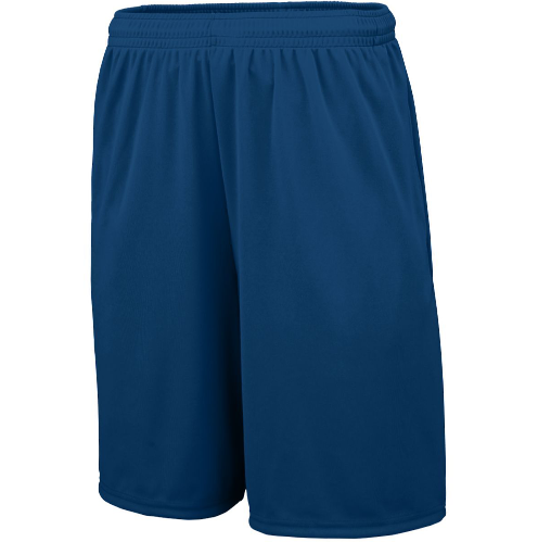 Augusta Adult 9 inseam Training Shorts with Pockets. 100% polyester wicking knit. Wicks moisture away from the body. Full-cut. Heat sealed label. Covered elastic waistband with inside drawcord. Side seam pockets. 9 inseam. Youth inseam graded. Double-needle hemmed bottom. Ships From Grovetown, GA.