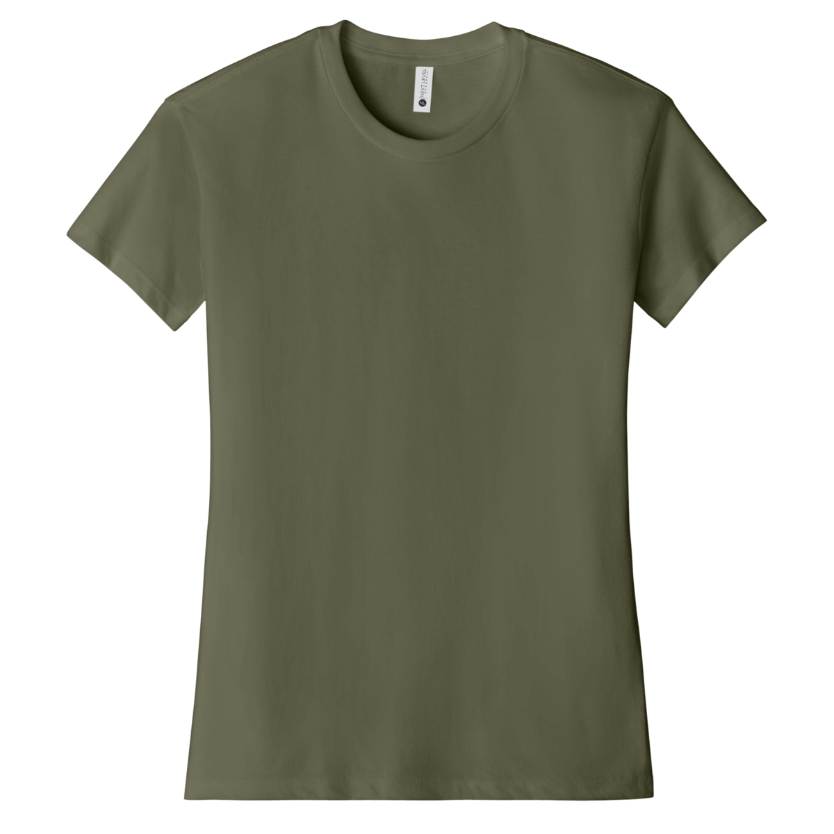 Next Level Women's 4.3 Ounce CVC Relaxed T-Shirt. 60/40 ring-spun cotton/polyester, 32 singles, 4.3 ounce. Relaxed fit. 1 x 1 baby ribbed collar. Side seams. Tear away label.