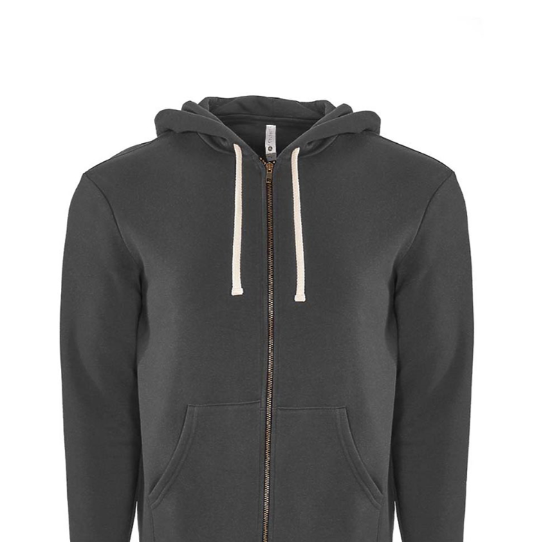 Next Level Unisex 7.4 Ounce Santa Cruz Full Zip Hoodie. 80% cotton/20% poly. 30 single/7.4 ounce 100% cotton face. Jersey lined hood. Flat drawcord in natural. Front pockets. Contrast 3/8 back neck binding. Locker patch for printable neck label. Exposed YKK zipper. 1x1 ribbing at waistband and cuffs. Unisex fit. Tear away label.