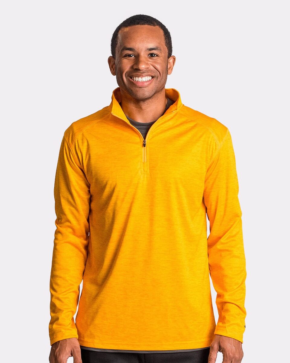 Badger Adult Tonal Blend 1/4 Zip long sleeve Tee. 100% Sublimated polyester moisture management/antimicrobial fabric. Self fabric collar with 7 locking zipper. Badger sport paneled shoulder for maximum movement.Double-needle hemmed bottom. Badger heat logo on left sleeve.