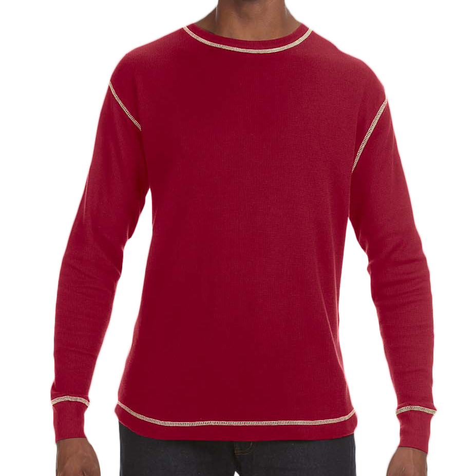 J-America Vintage Long Sleeve Thermal T-Shirt. 6.25 oz., 100% cotton. Charcoal Heather is 60/40. Contoured bottom hem. Contrast color flatlock stitching.