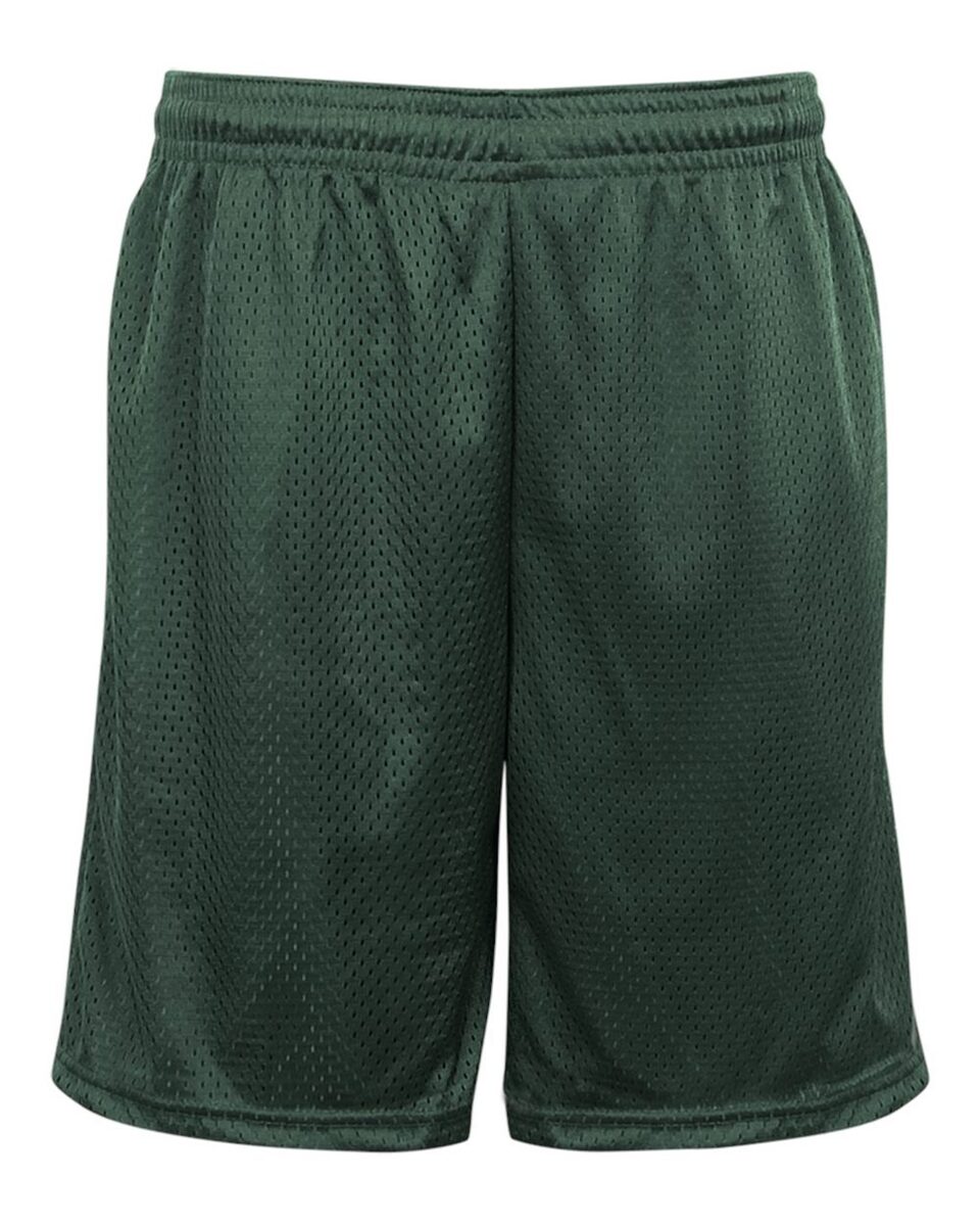 Badger Adult Polymesh Pocket Shorts With 9 Inseam. 100% polyester, 70 denier pro-mesh with solid tricot liner. Side entry pockets. Athletic cut. Superior fit. 2 covered elastic waistband and drawcord.
