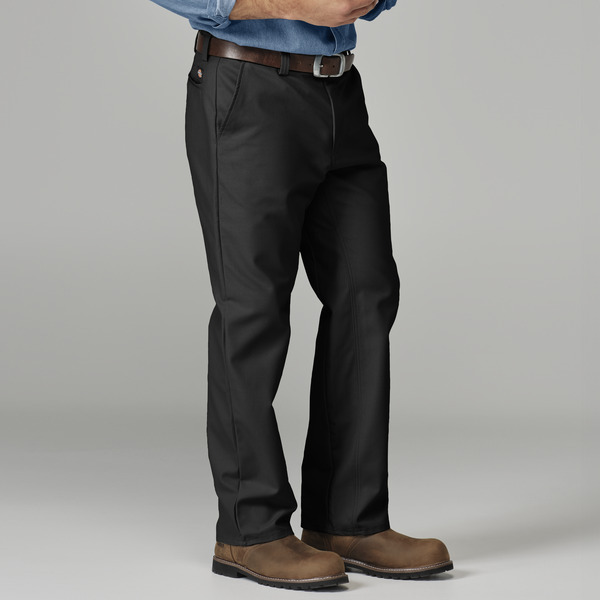 Dickies Adult 7.5 Ounce Plain Front Work Pant. Work wear that moves when you do! 60/40 cotton/polyester 7.5 ounce canvas weave with color retention, soil release and wrinkle resistance. Double needle stitching throughout. Lower rise than traditional work pants for a modern fit. Reinforced, deep 13 pockets. Wider and longer belt loops. Full inseam gusset for comfort during bending, squatting, lifting or climbing. Waist 32. Style Ships From El Dorado Springs, MO. From March to December 2019, these styles will transition from Wrangler to Dickies labels. Product may be shipped as mixed labels during this time