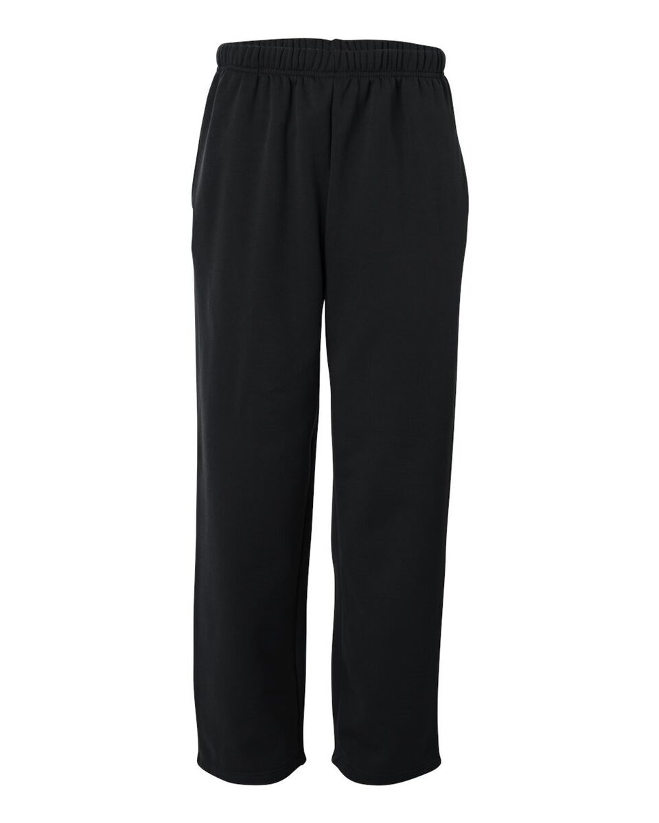Badger Adult Performance Open Bottom Sweat Pants. 100% Polyester moisture management fabric. Covered elastic waistband & drawcord. Two deep side pockets, Double-needle hem, Embroidered Badger logo on left hip.