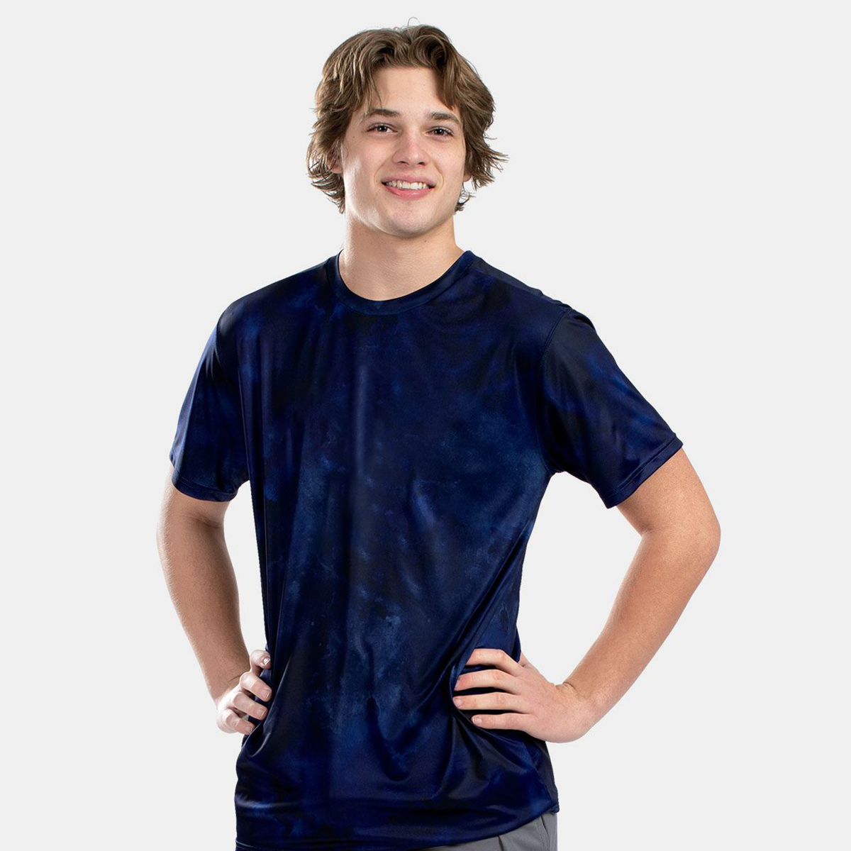 Holloway Adult Cloud Short Sleeve T-Shirt. 5.6 Ounce 95% polyester/5% spandex wicking knit. Fully sublimated design. Wicks moisture. Odor resistant. Tagless Label. Crew neck. Garment protects against the sun with 50+ UPF. Set-in sleeves. Because of the manufacturing process of the fabric and garment, each t-shirt will be unique.