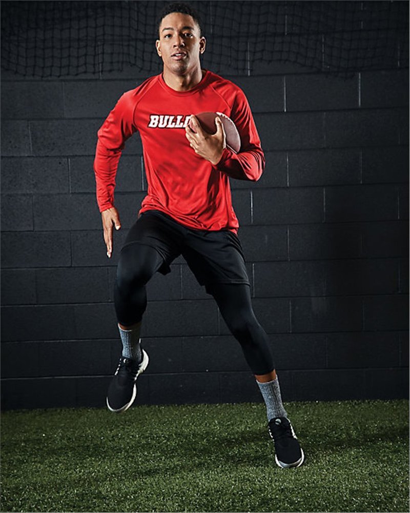 - 3.4 oz./yd², 100% polyester moisture management knit with color secure® technology to prevent dye migration